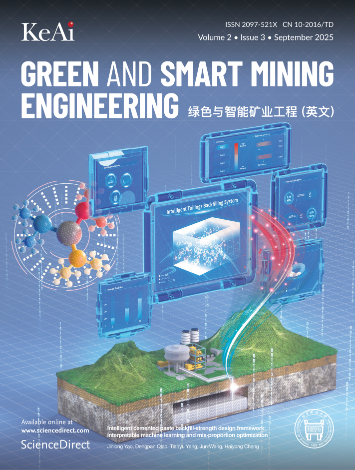 Green and Smart Mining Engineering(中文名:《绿色与智能矿业工程(英文)》)由北京科技大学主办,期刊中心和资源与安全工程学院联合承办,KeAi合作出版。2024年正式创刊,已入选“2023年度中国科技期刊卓越行动计划高起点新刊项目”,以及“中国科技期刊卓越行动计划”集群(集团)化试点项目(工程技术期刊集群),致力于打造成为绿色与智能矿业领域的世界一流英文科技期刊。由中国工程院院士北京科技大学蔡美峰教授和美国工程院院士美国明尼苏达大学Emmanuel Detournay教授担任主编,由北京科技大学资源与安全工程学院苗胜军教授和尹升华教授担任执行主编。已被CSCD核心库、GeoRef、CAS、EBSCO、NASA ADS和中国知网等数据库收录。